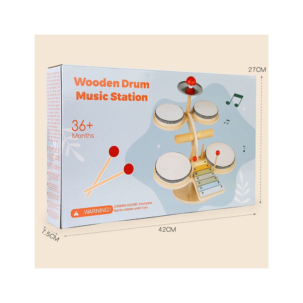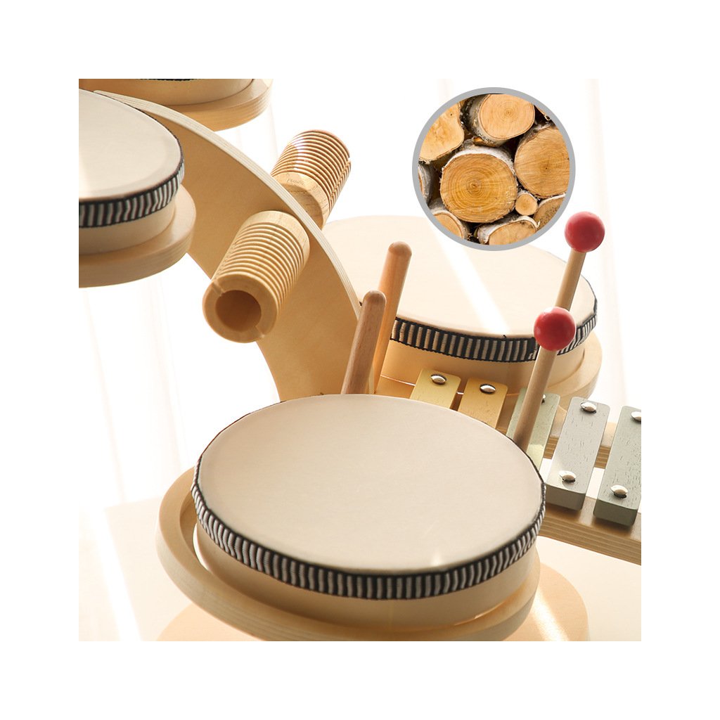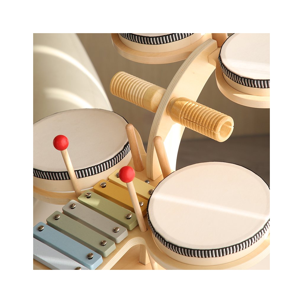 Dětská dřevěná hudební sada – Montessori bubínková souprava 7v1