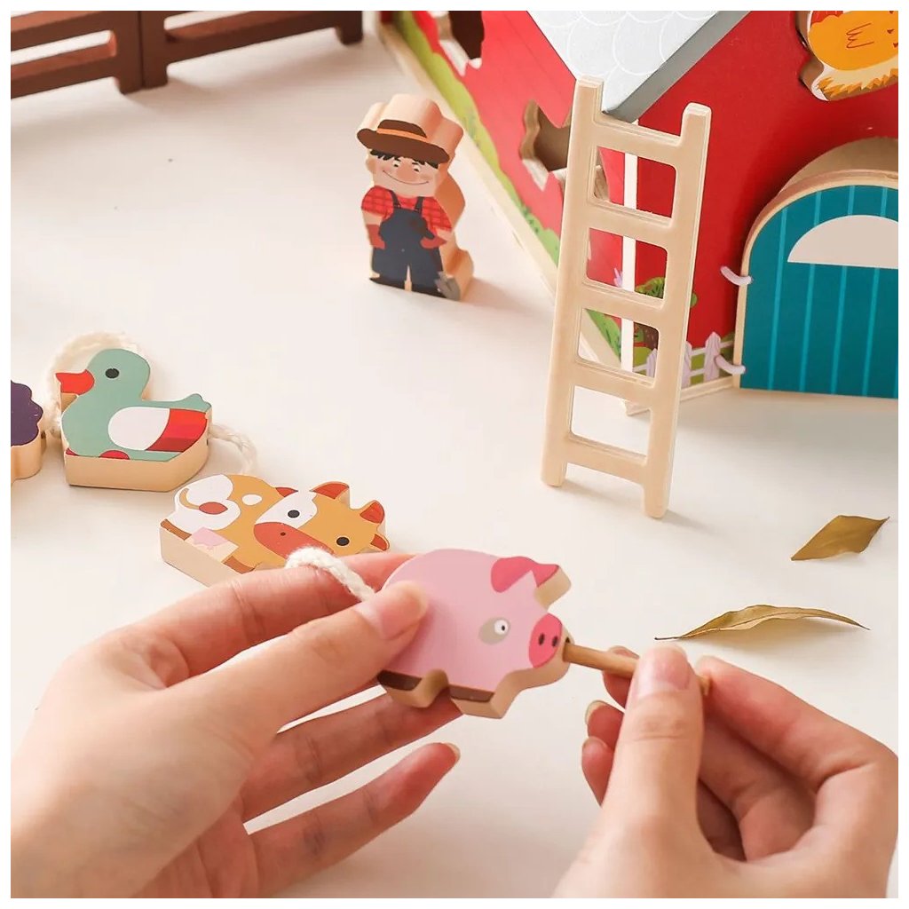 Drevená prenosná farma s aktivitami