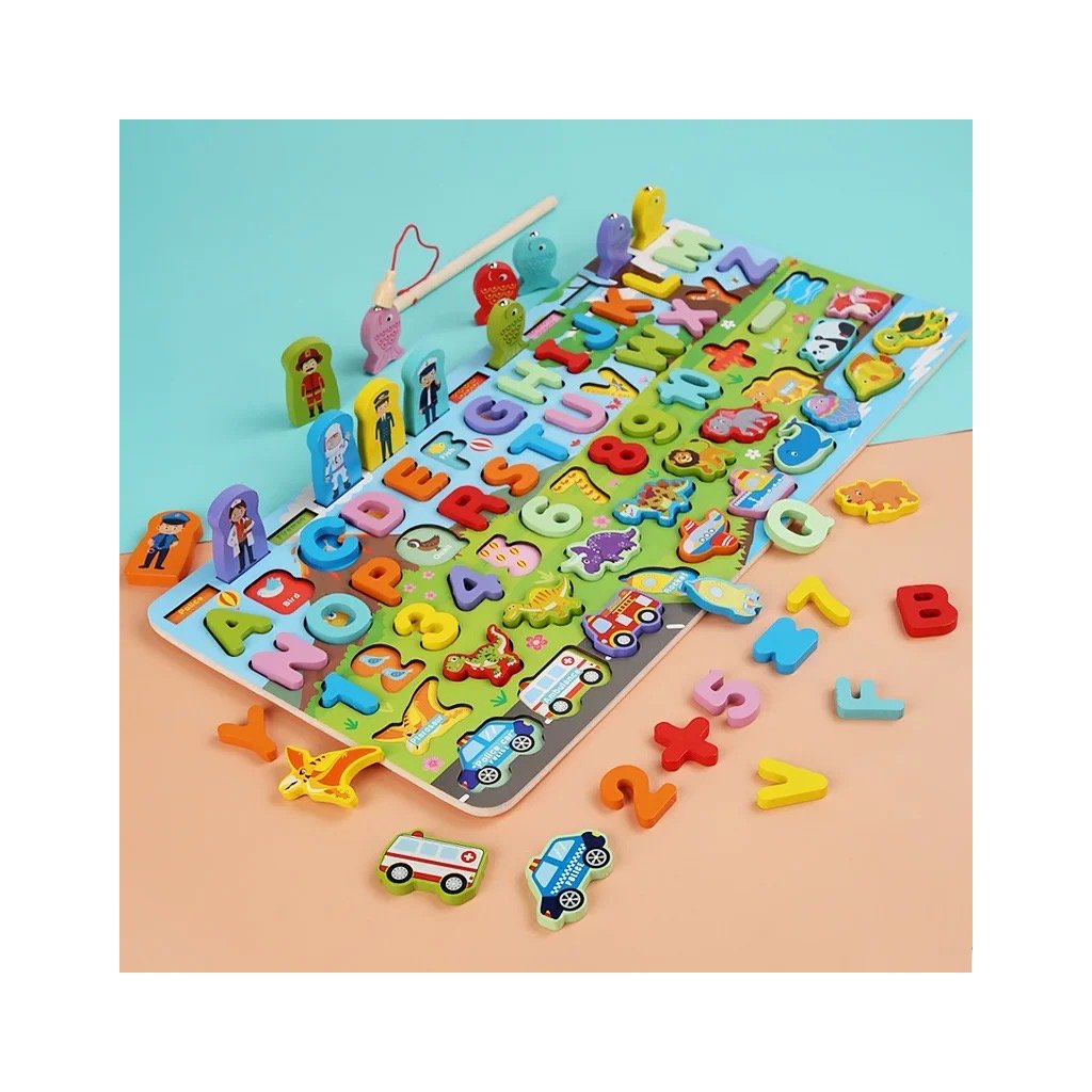 Drevená vkladačka - dinosaury, ryby, čísla, doprava, zvieratá, abeceda, povolania, 73 ks