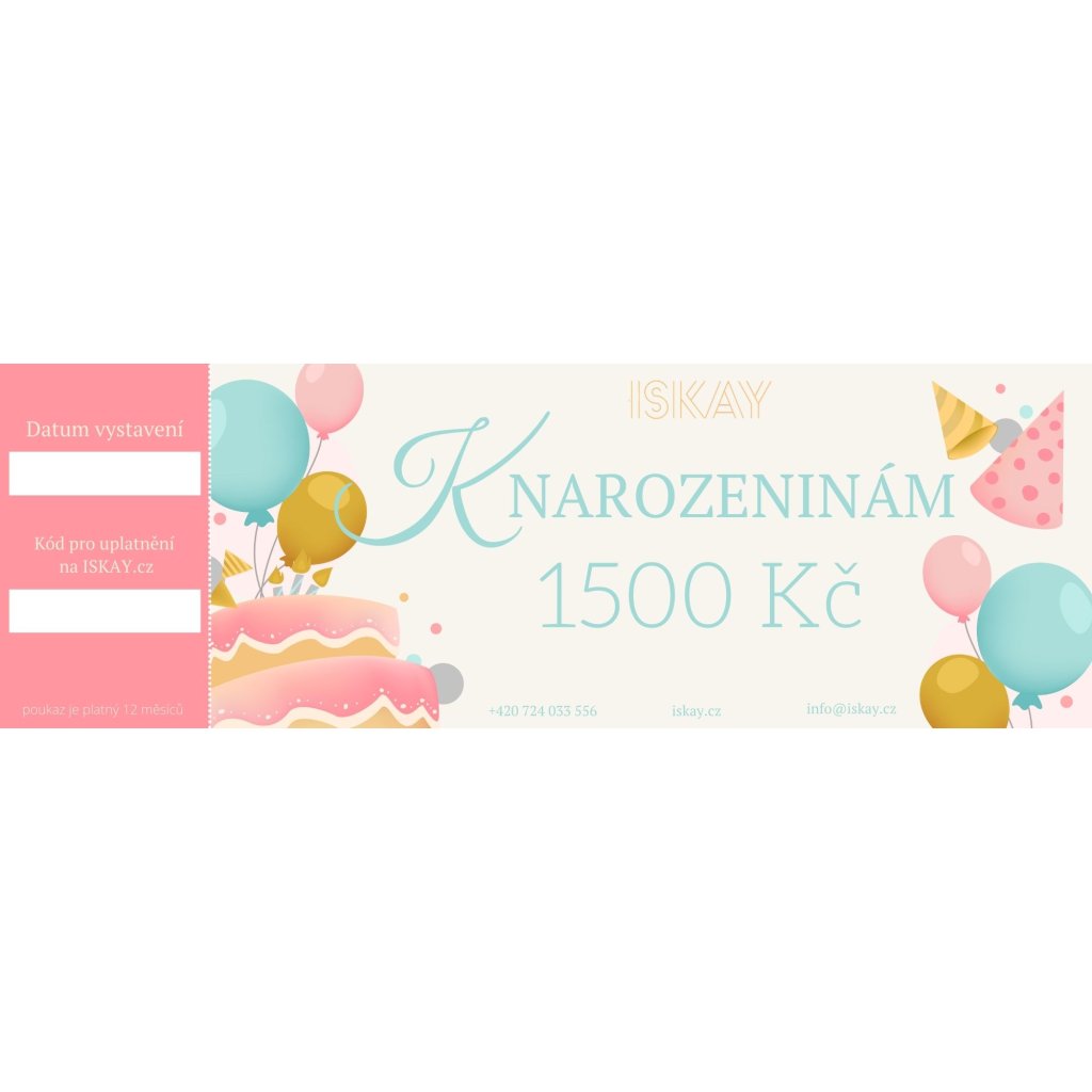 Vyberte si darčekový poukaz v hodnote 300 Kč, 500 Kč, 700 Kč, 1 000 Kč, 1 500 Kč, 2 000 Kč alebo 3 000 Kč na nákup z ISKAY.cz!