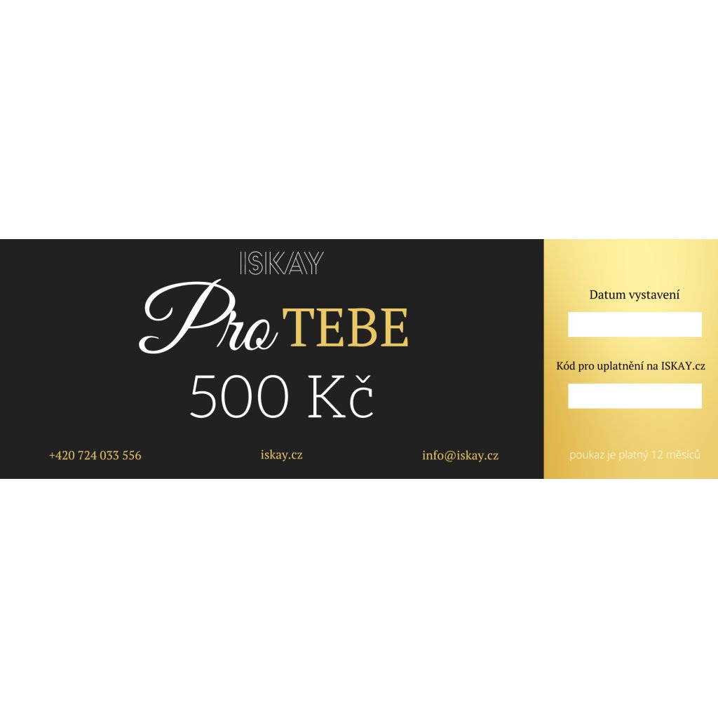 Vyberte si darčekový poukaz v hodnote 300 Kč, 500 Kč, 700 Kč, 1 000 Kč, 1 500 Kč, 2 000 Kč alebo 3 000 Kč na nákup z ISKAY.cz!