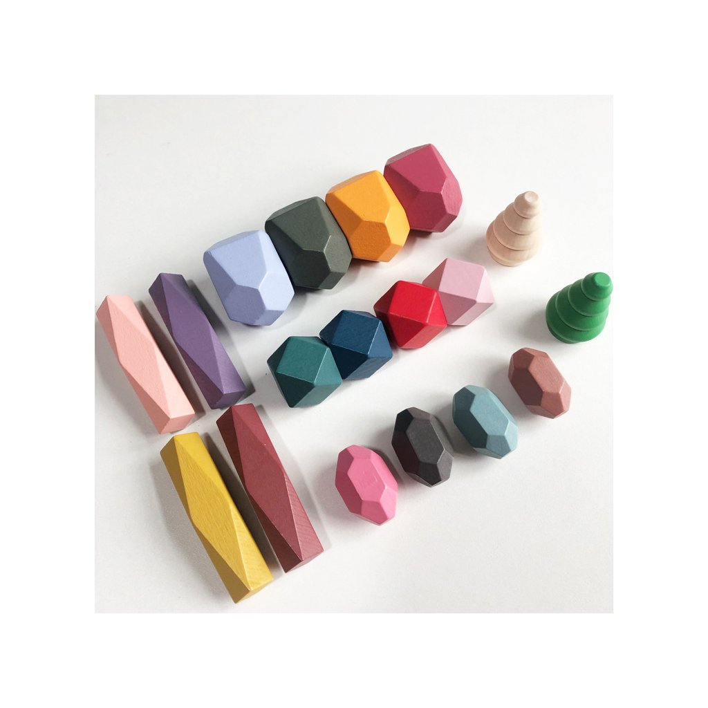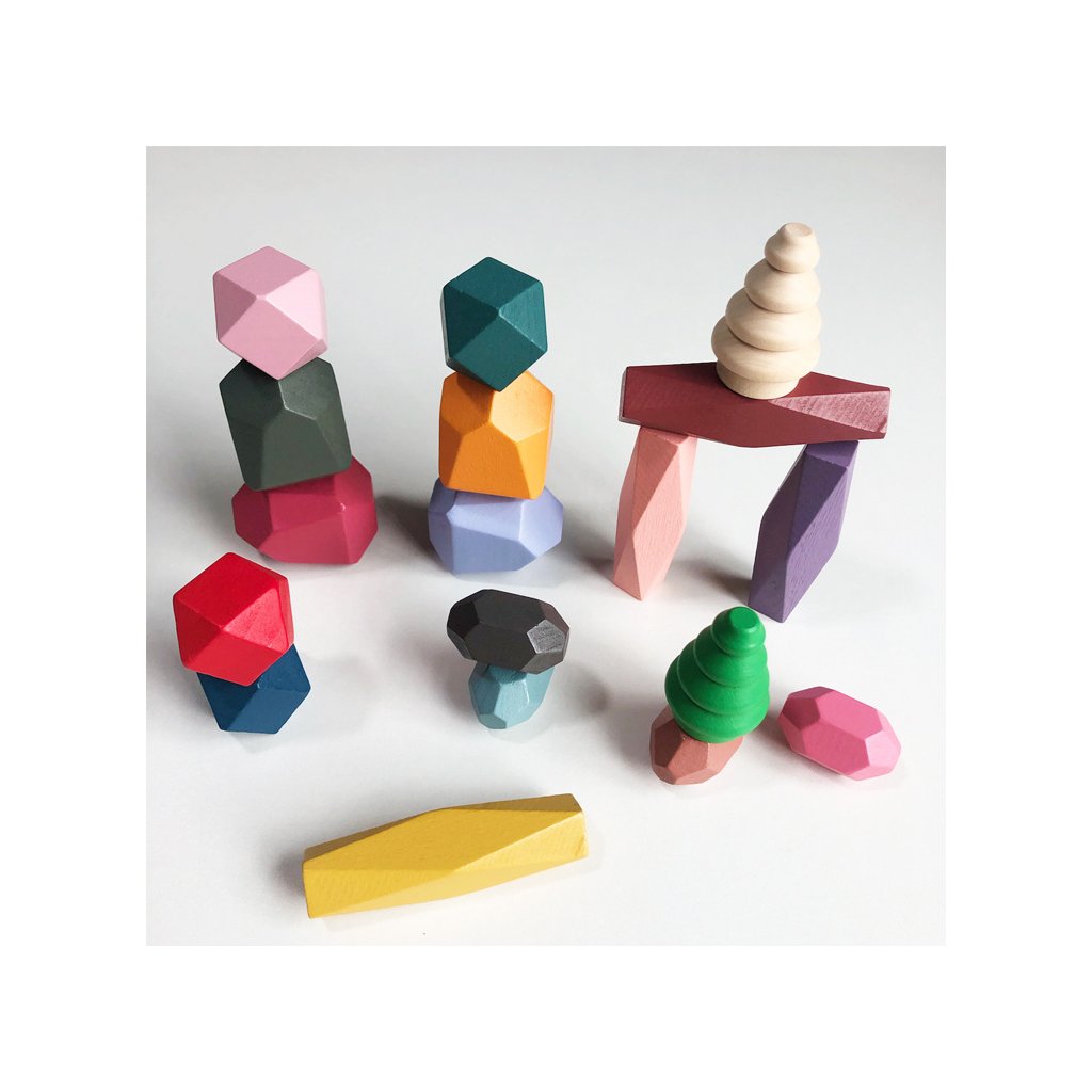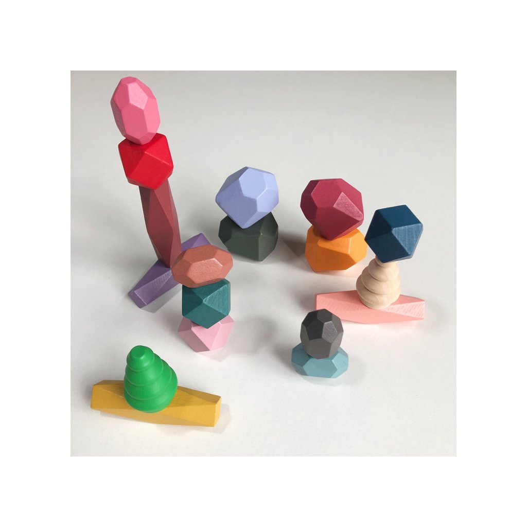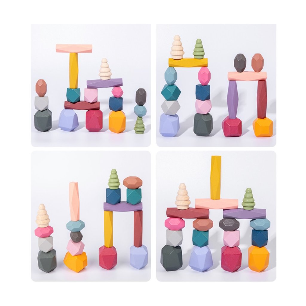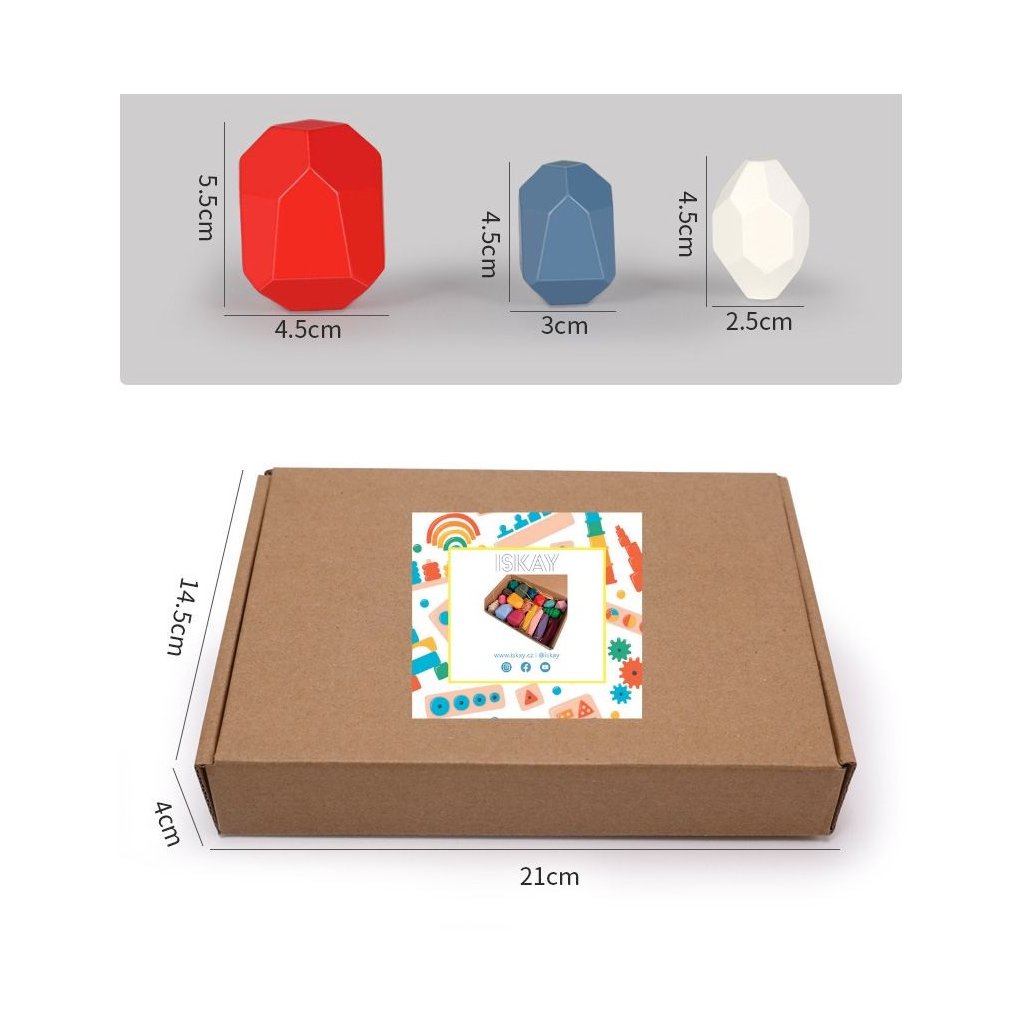 Iskay sada 18 kusov farebných drevených kameňov, z ktorých si môže dieťa postaviť mnoho rôznych stavieb, tvarov, veží a ďalších. Všetky kocky majú zaoblené hrany, sú vyrobené z dreva a majú rôzne farebné prevedenia. Hra s nimi podporuje u detí predstavivosť a motoriku. Hračka je určená pre deti od 36 mesiacov veku.