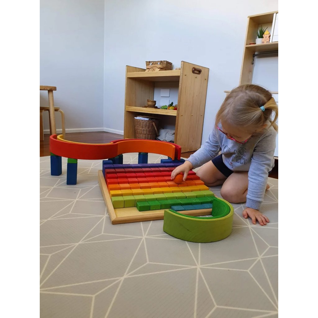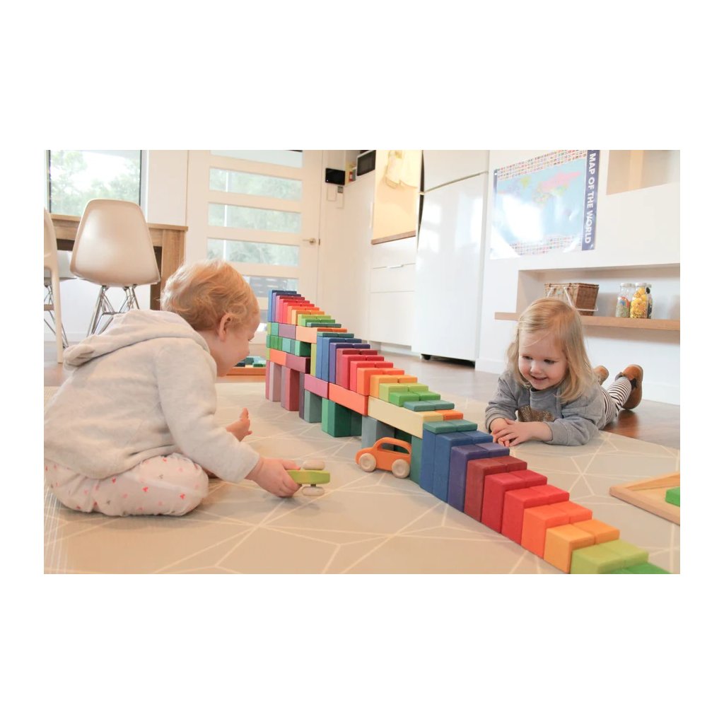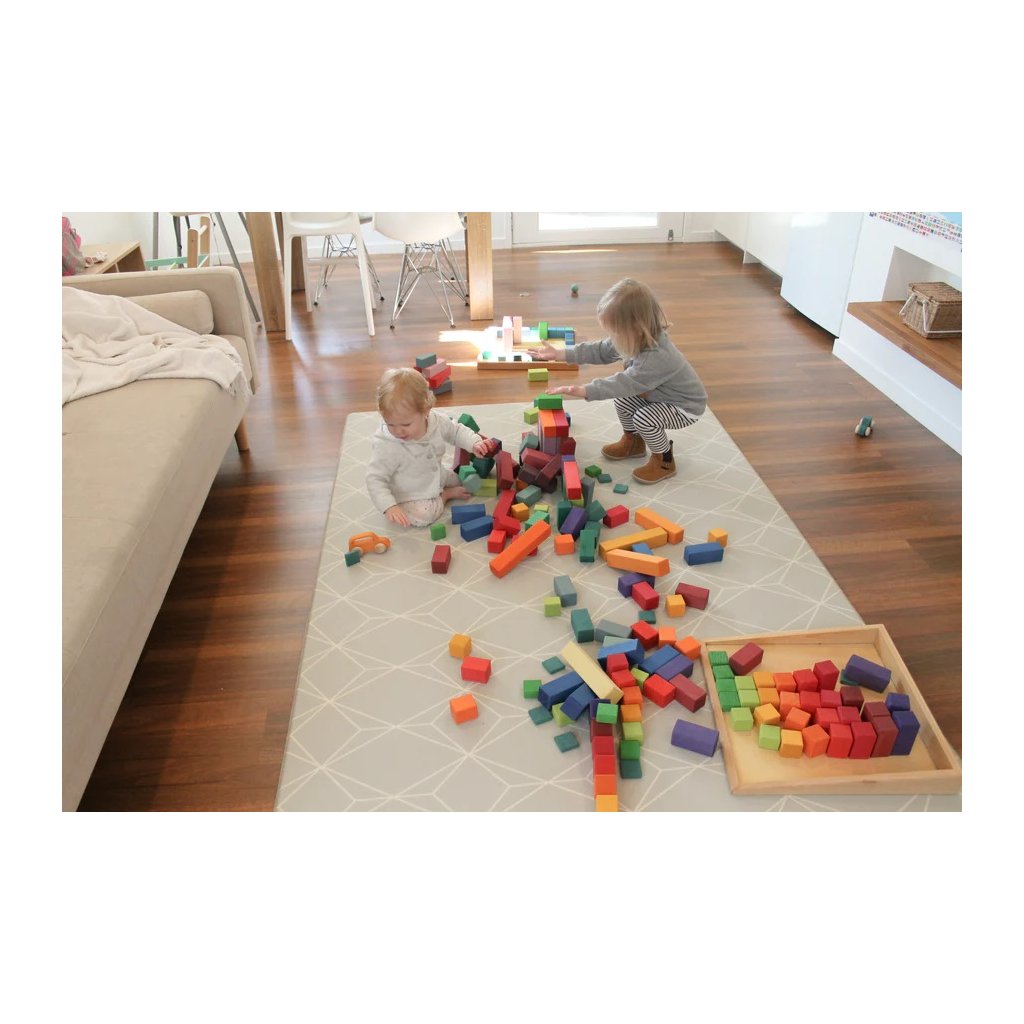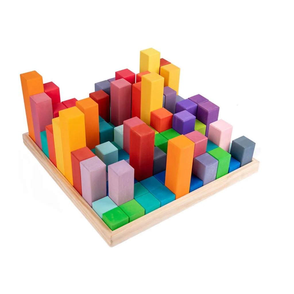 Kocky sú kvalitne spracované, hladké a perfektne padnú do detskej ruky. Aj farbené drevo si zachováva svoju prirodzenú textúru a kresbu. Je len na vás, vašich deťoch a fantázii, ako kocky použijete. Môžete triediť podľa farieb, počítať alebo porovnávať veľkosti.