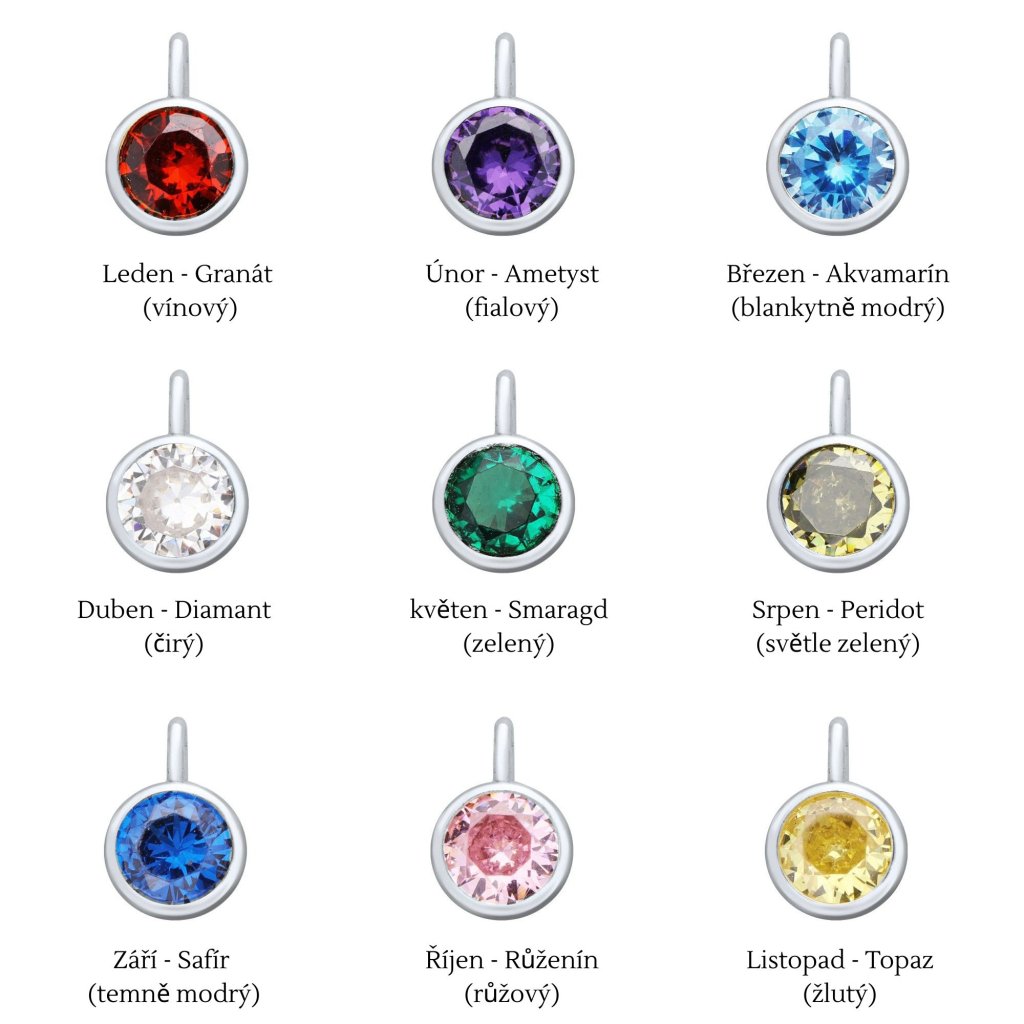 Prívesky BIRTHSTONES sú dokonalým spôsobom, ako mať pri sebe vždy symboliku vlastného narodenia alebo narodenia Vášho bábätka. Každý prívesok je osadený drahokamom, ktorý je priradený k určitému mesiacu a nesie jedinečnú energiu a význam.